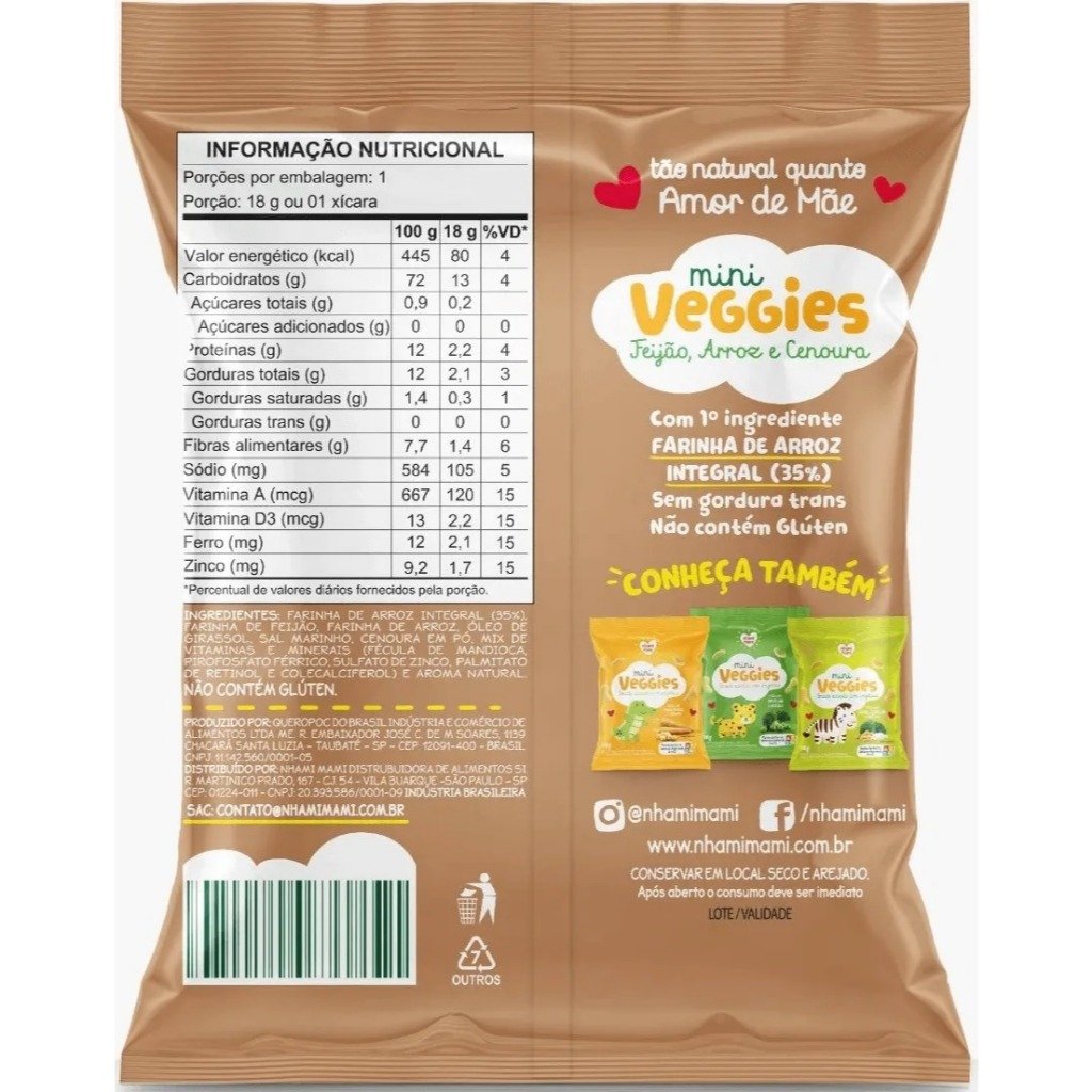 Mini Veggies Feijão, Arroz e Cenoura UN 18G - NHAMI MAMI
